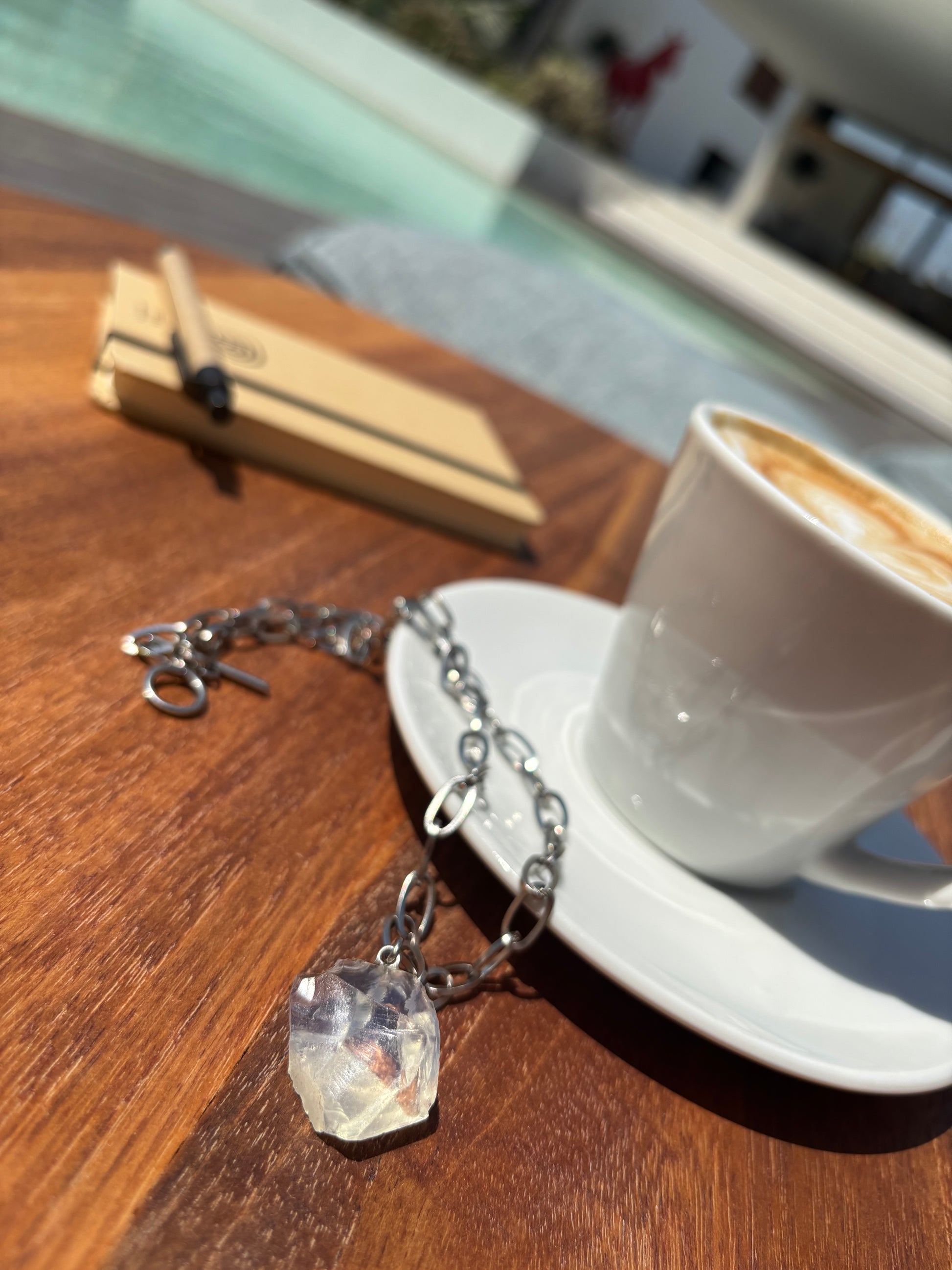 Diese begehrte Halskette Raw Quartz verbindet rohen Bergkristall mit kühlem Edelstahl. Der ungeschliffene Kristall zeigt sich in seiner natürlichen Schönheit – klar, facettenreich und einzigartig in Struktur. Jeder Stein ist ein Unikat – kein Schliff, keine Kopie, keine Wiederholung. Ein echtes Stück Natur, das nur einmal existiert.